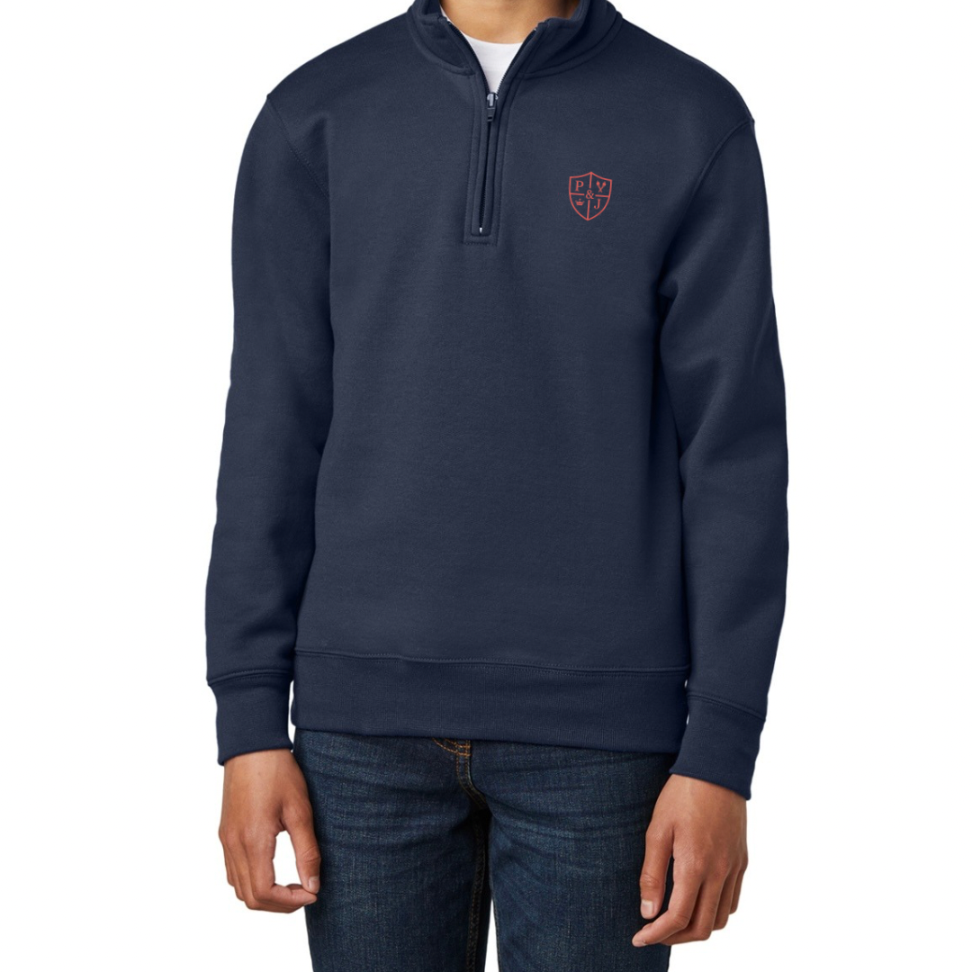 PJ Signature Youth Quarter-Zip Sweater — Navy/Red